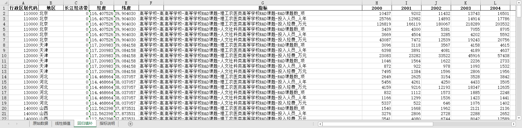 excel数据文件包原始数据(由于多年度指标不同存在缺失值)、线性插值、ARIMA填补三个版本,提供您参考使用。