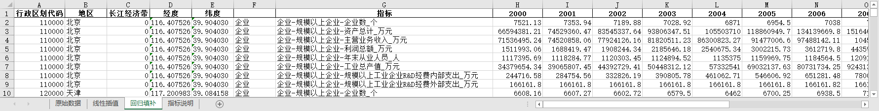 excel数据文件包原始数据(由于多年度指标不同存在缺失值)、线性插值、ARIMA填补三个版本,提供您参考使用。