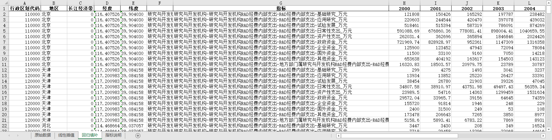 excel数据文件包原始数据(由于多年度指标不同存在缺失值)、线性插值、ARIMA填补三个版本,提供您参考使用。