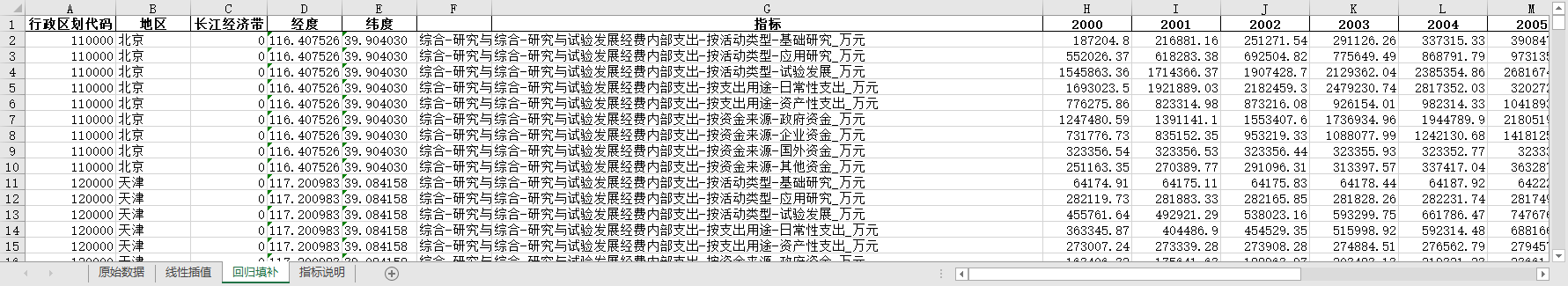 excel数据文件包原始数据(由于多年度指标不同存在缺失值)、线性插值、ARIMA填补三个版本,提供您参考使用。