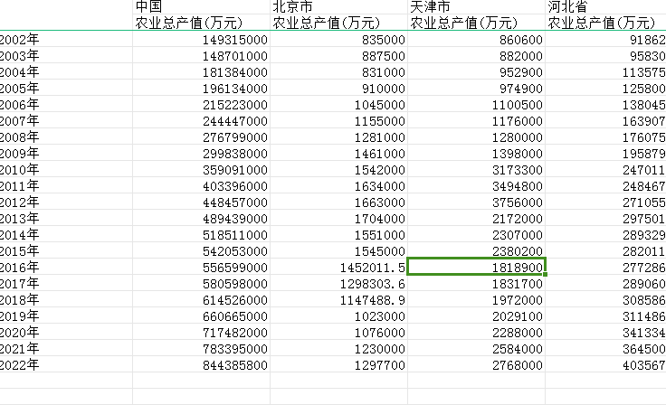 4、指标解释:农业总产值是一定时期(通常为一年)内以货币形式表现的农、林、牧、渔业全部产品的总量。反映农业生产总规模和总成果。