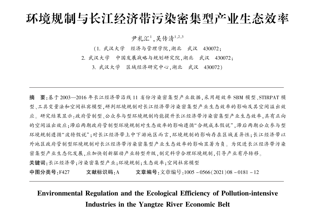[1]尹礼汇,吴传清.环境规制与长江经济带污染密集型产业生态效率[J].中国软科学,2021(08):181-192.