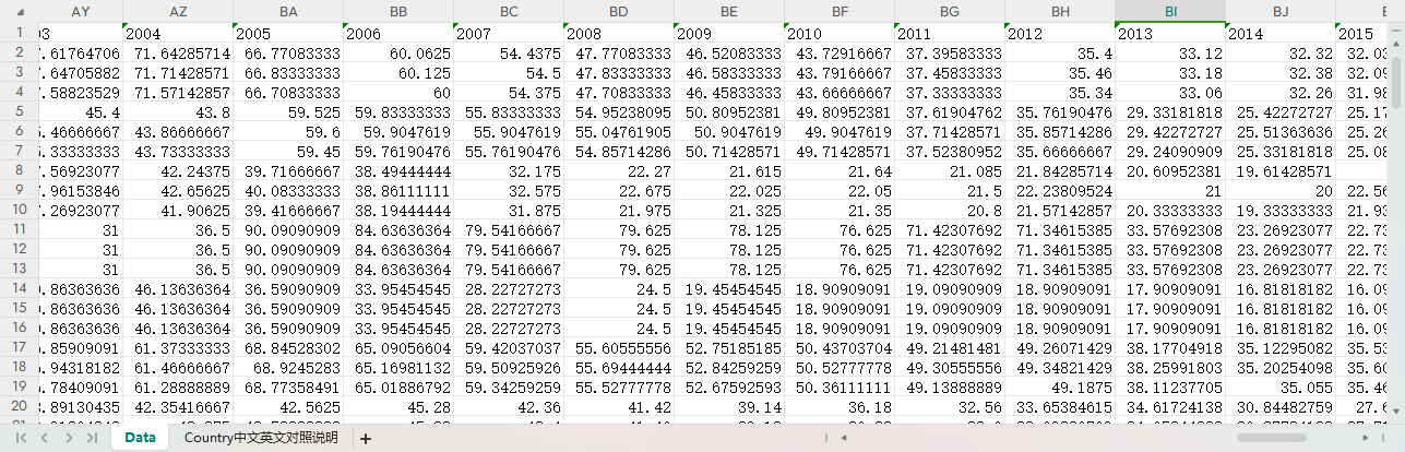 (国家、指标翻译成了中文,还有国家中英文说明等相关的对照表页签,方便使用)