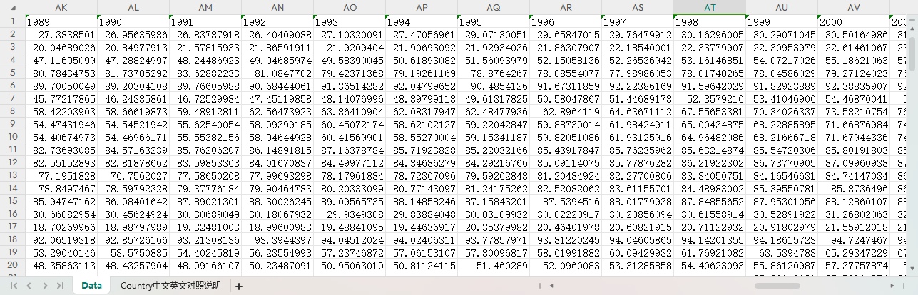 (国家、指标翻译成了中文,还有国家中英文说明等相关的对照表页签,方便使用)