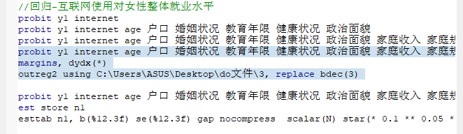 第一步是probit基准回归,第二部是边际效应,然后我想输出边际效应的表格,但是输出的总是第一步的表格,求助 怎么才能输出边际效应的表格啊