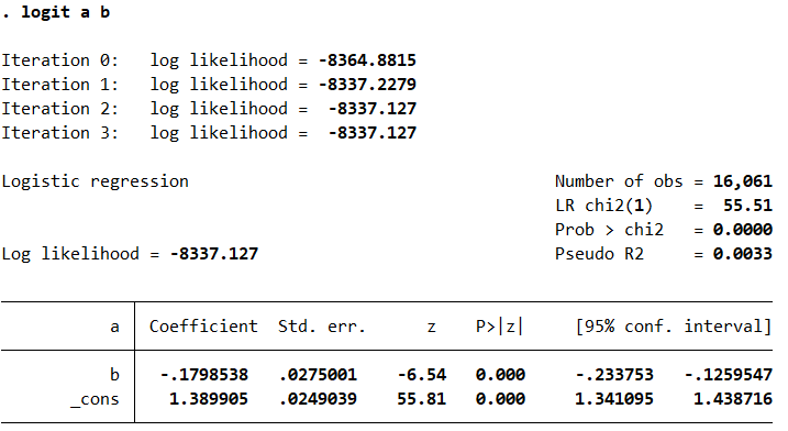 请问,对两个变量进行回归,为什么会出现logit的系数是负的而reg的系数是正的呢?出现这种情况应当如何解决呢?谢谢大家!