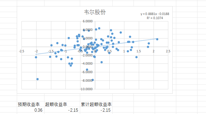 韦尔股份五次股权激励事件研究法计算AR CAR 超额收益率 累计超额收益率 折线图 散点图