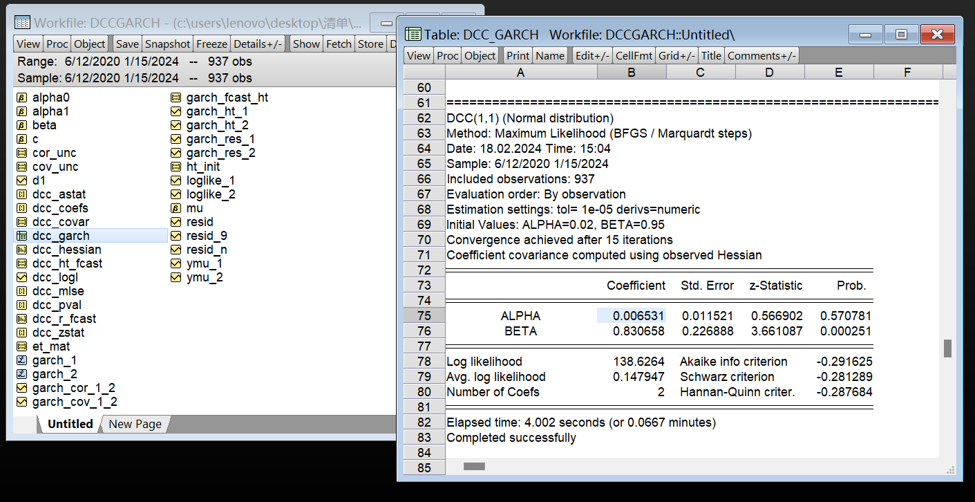 想问一下,eviews里面已经跑出来了dccgarch模型,后续怎么接着做出来动态相关系数时序图呢?