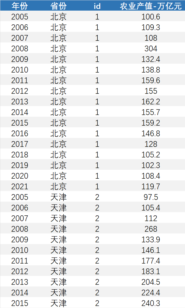 数据名称:各省份农业发展水平农业产值数据05-21年