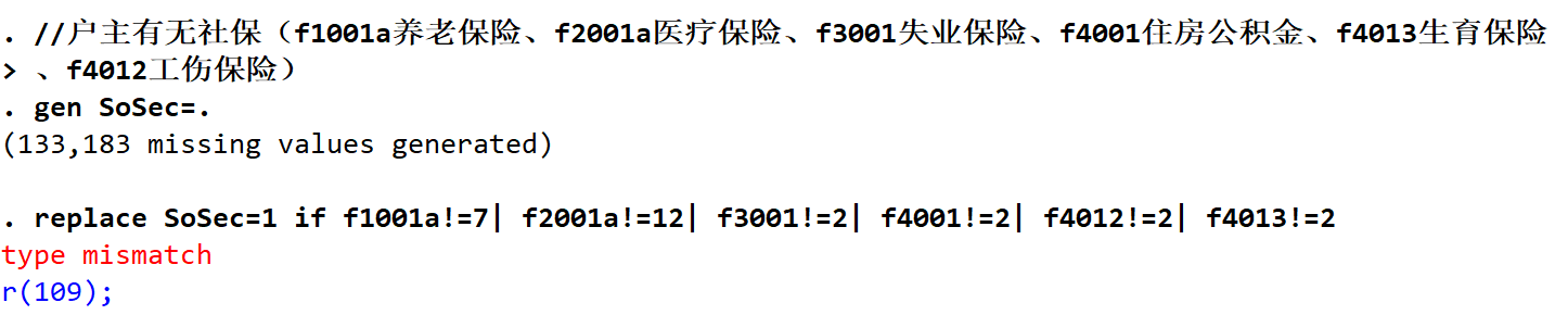 label var SoSec"户主有社保1,无社保0,社保包括养老保险、医疗保险、生育保险、工伤保险、失业保险和住房公积金"