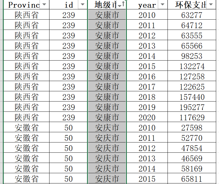 2010-2020年261个地级市节能环保支出数据