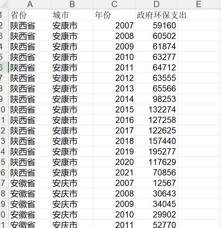 2007-2021年265个地级市节能环保支出数据