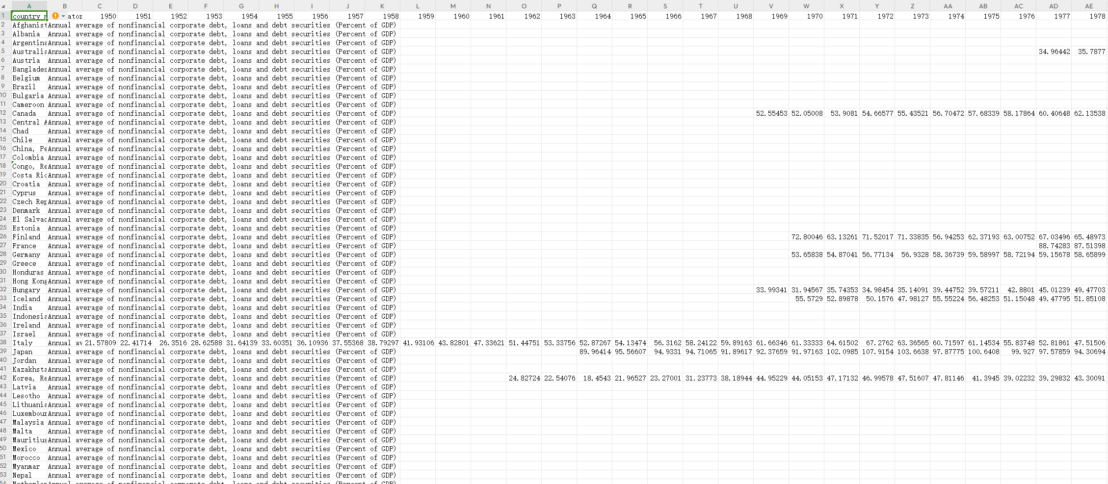 背景描述全球债务数据库(GDD)是2016年10月财政监测报告启动的广泛调查过程的结果。该数据集囊括了190个发达经济体、新兴市场经济体和低收入国家的不平衡小组的非金融部门(包括私人和公共部门)的总债务,其记录可追溯到1950年。全球债务数据集汇总了来自不同来源的信息,以提供公共和私人债务指标的全面视图。它包括有关公司债务数据,使用户能够深入研究不同债务类别之间的趋势、模式和相互关系。