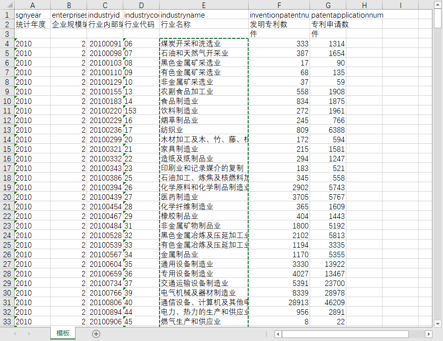 - 各行业发明专利申请量统计表(2010-2022)220045101.zip