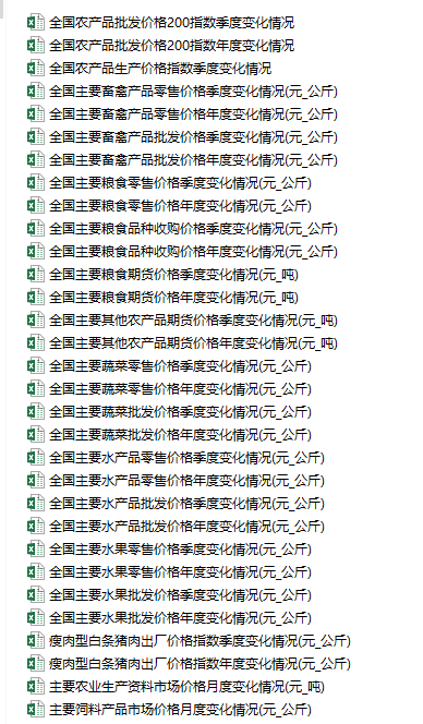 · 全国农产品生产价格指数季度值(2019第一季度-2020第四季度)