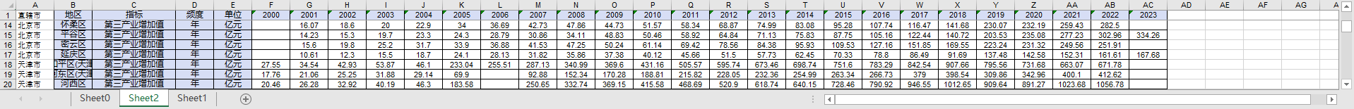 北京天津上海重庆市直辖市区县第三产业增加值2000-2023