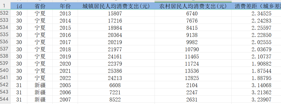 附件 各省份消费差距(城乡差距)数据(2005-2022)