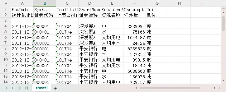 上市公司资源消耗明细表(2008-2023)资源名称消耗量