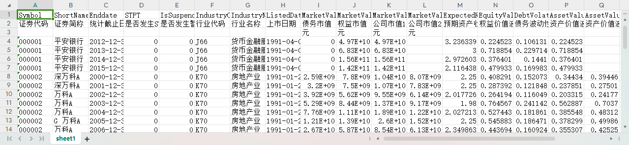 上市公司财务困境MertonDD模型2000-2023行业名称代码上市日期债务权益市值预期资产收益率权益价值波动性债务波动性资产价值波动性
