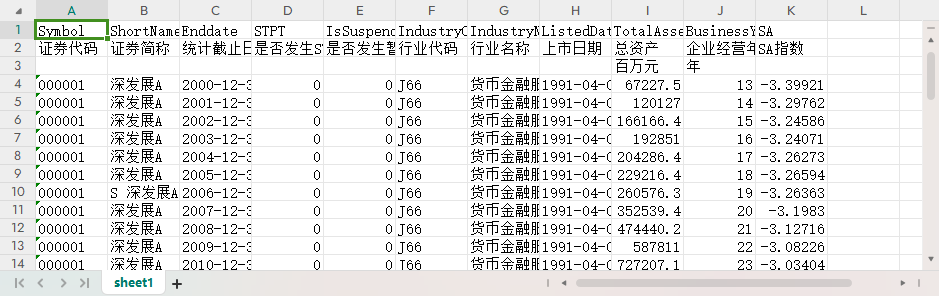 上市公司融资约束SA指数2000-2023行业代码名称总资产企业经营年度SA指数