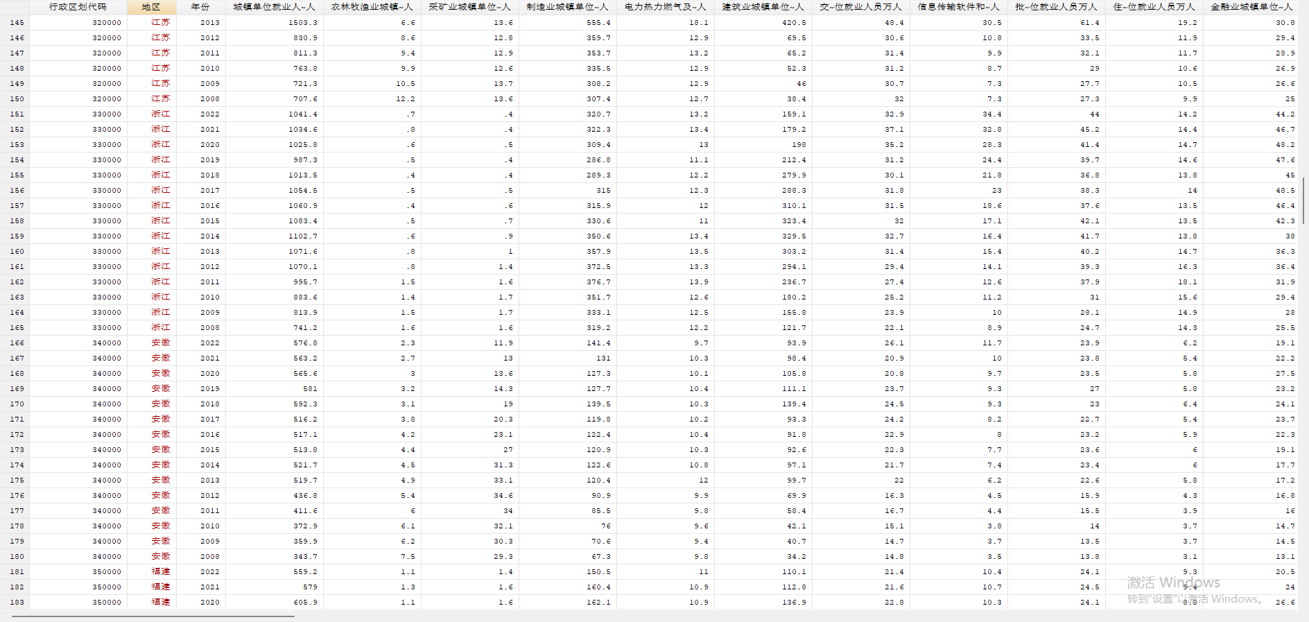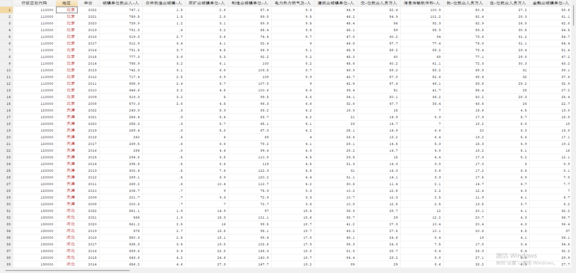 省级面板(2008-2022):城镇就业、农村就业、制造业金融业房地产业交通运输业等各行业就业人数