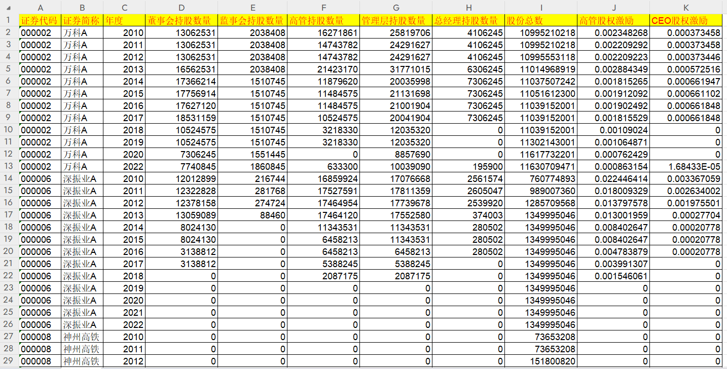 2022-2010年高管股权激励+CEO股权激励数据共37701个样本