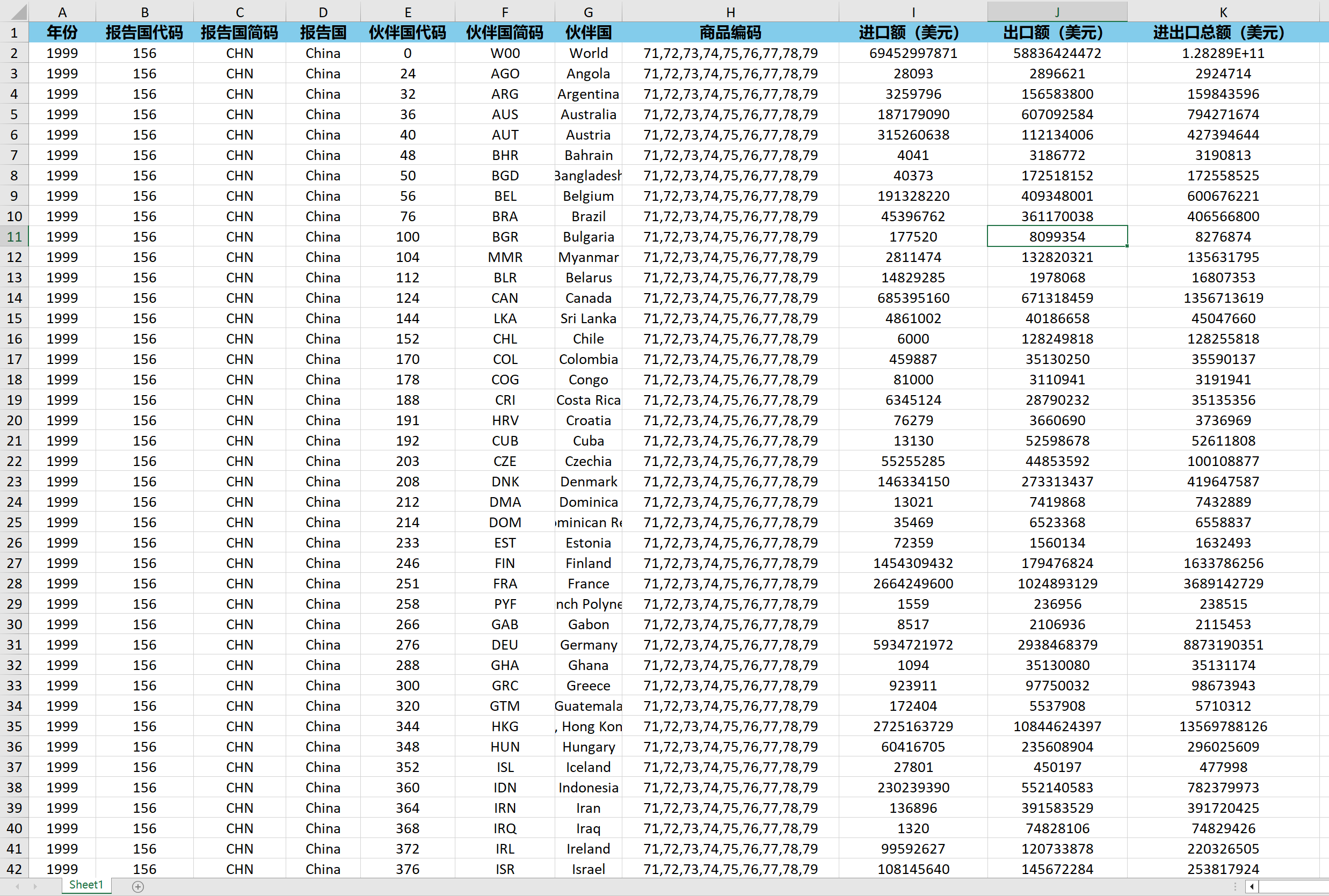 数据是中国对各个国家的!!文件包中包含的文件见图1!