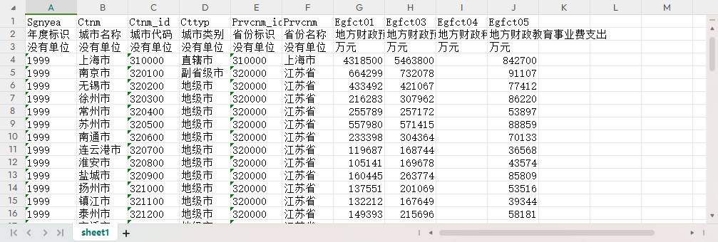 全国分城市财政收支(1999-2022)地方财政预算内收入支出科学事业费教育事业费支出