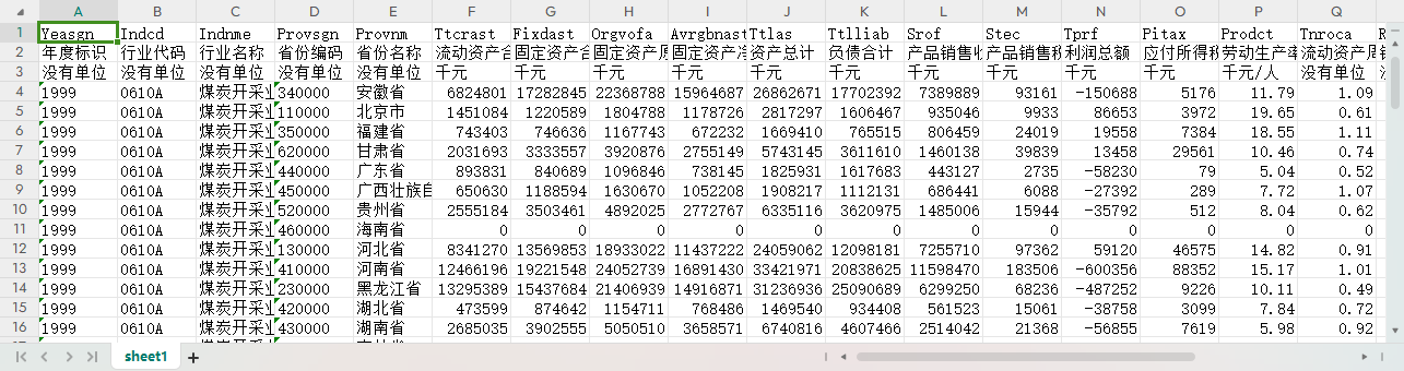全国分省份分工业行业主要经济指标年度文件1999-2022流动固定资产负债产品销售收入销售税金及附加周转利润率
