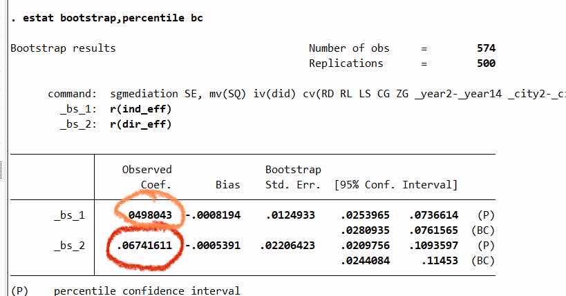 分别用三步法,bootstrap法和sobel检验跑出来的结果,用相同颜色圈出来的值都是一样的,不同的方法跑出一样的值,这是正常的吗?