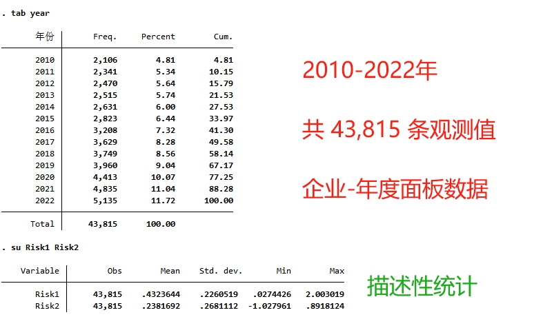 范围:2010 - 2022 年,共 43,815 条观测值,全部A股上市公司
