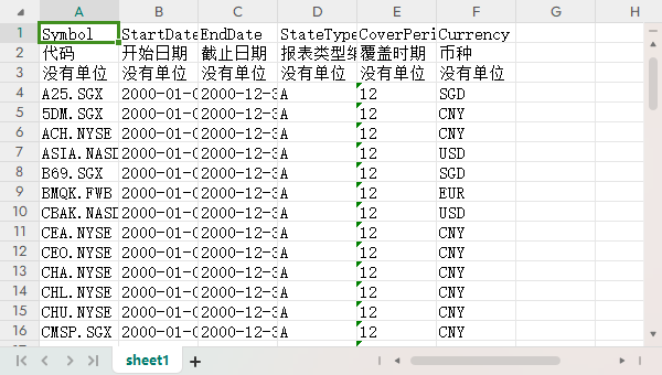 Symbol [代码] - 以当地交易所公布的股票代码为主