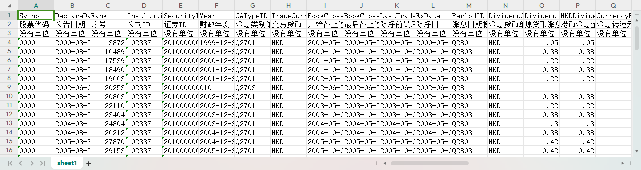 香港股票港股上市公司分红派息表1999-202403