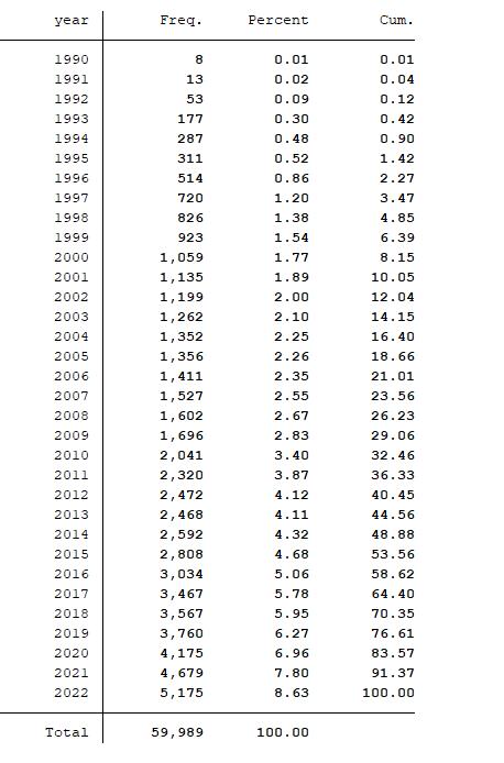 | ln_citations | 上市公司当年被引用专利的申请数,取自然对数 |