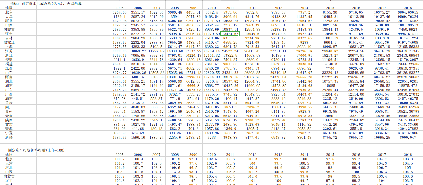 3、指标:固定资产形成总额、固定资产投资价格指数、资本存量(2018-2021年固定资产形成总额利用年增长率计算所得)