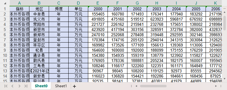 河南省117个区县金融机构本外币各项贷款余额人民币各项贷款余额2000-2023