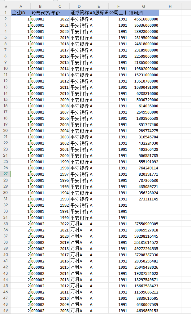 上市公司净利润1990-2022年
