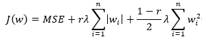 在弹性网回归(Elastic Net Regression)中,正则项是L1和L2正则项的线性组合。其公式为: