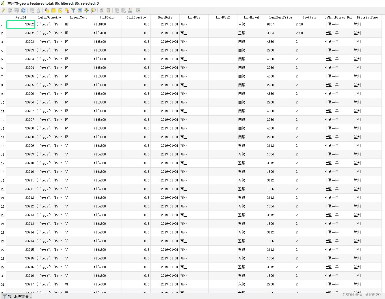 2022年兰州市土地基准地价矢量数据(WGS84)