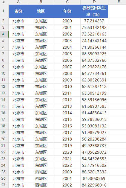 数据名称:2000-2022年中国地级市乡村振兴农村贫困发生率(%)