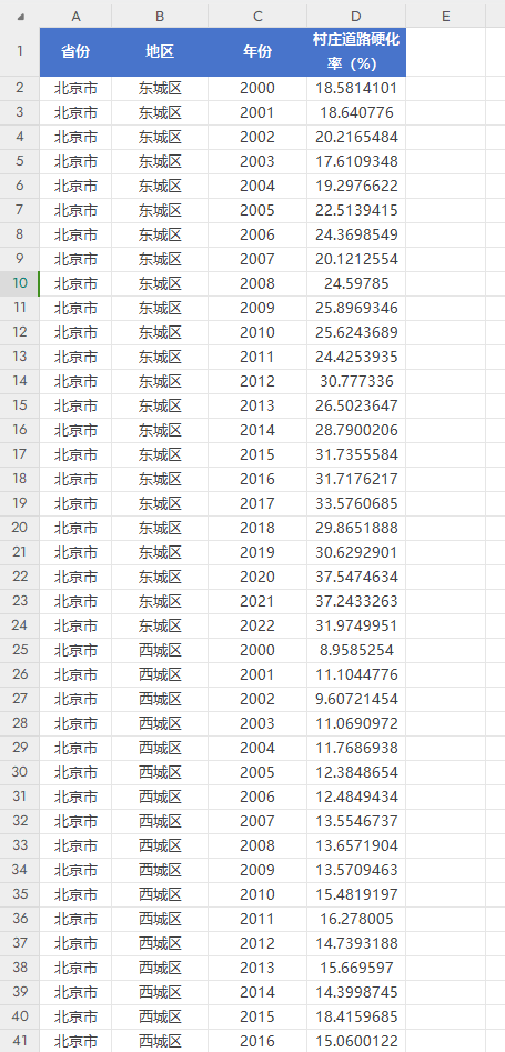 数据名称:2000-2022年中国地级市乡村振兴村庄道路硬化率(%)