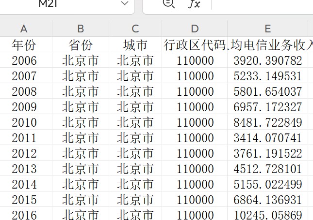 地级市人均电信业务收入2006-2021.xlsx