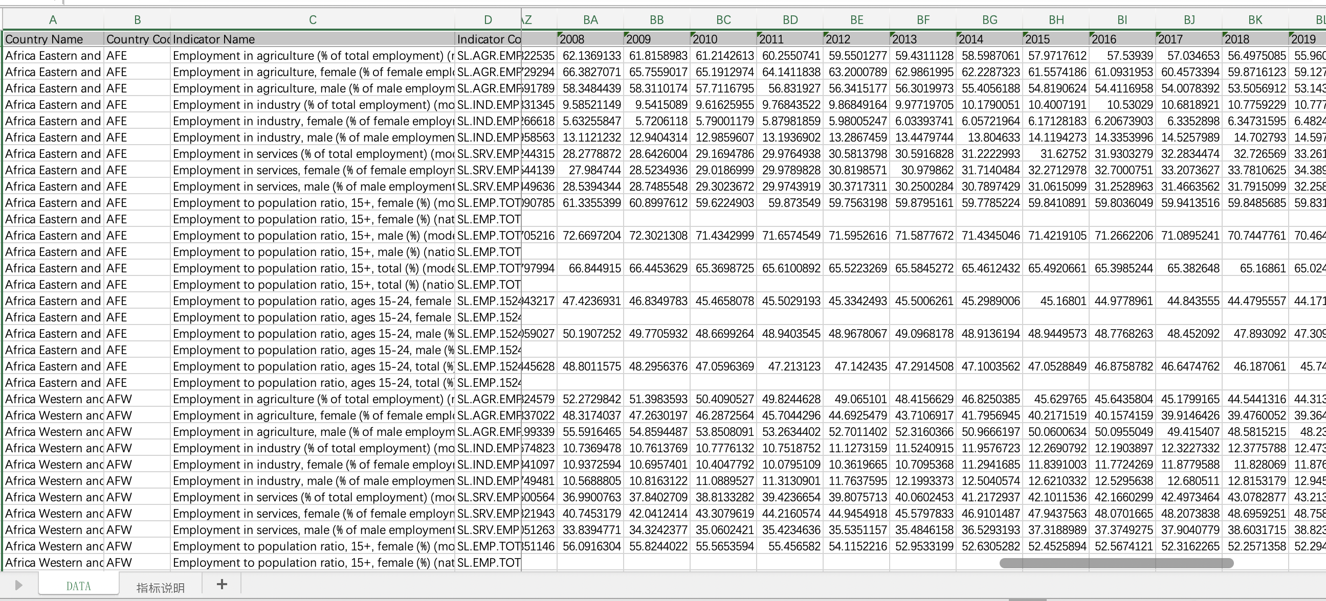 Employment in services (% of total employment) (modeled ILO estimate) | 服务业就业(占总就业的百分比)(国际劳工组织模型估计) |