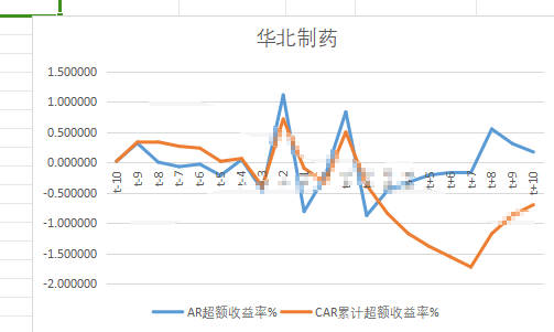 事件研究法计算超额收益累计超额收益计算过程+数据+图表 华北制药事件研究法