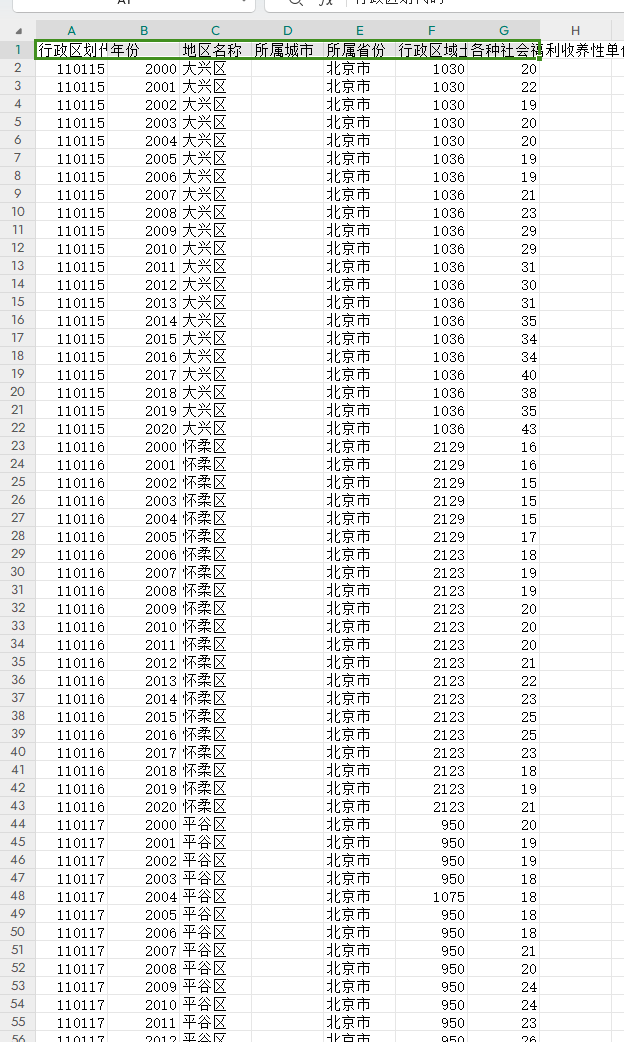 全国省市县-基础医疗与社会保障数据(2000-2020年)年份、地区名称、所属城市、所属省