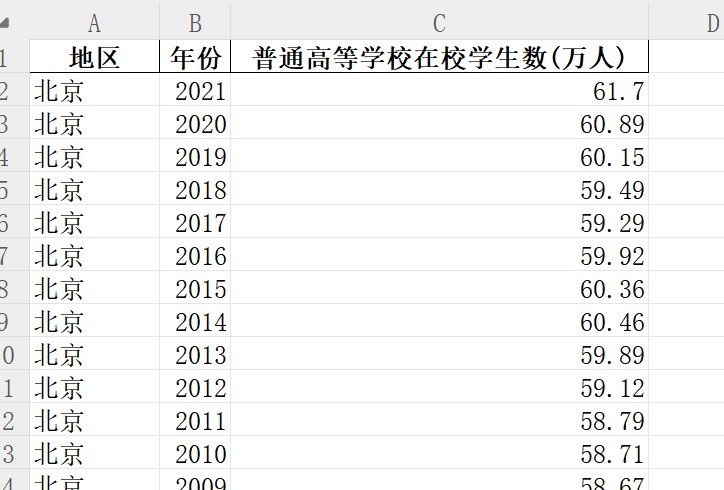 普通高等学校在校学生数(万人)2005-2021普通高等学校在校学生数(万人)2005-2021