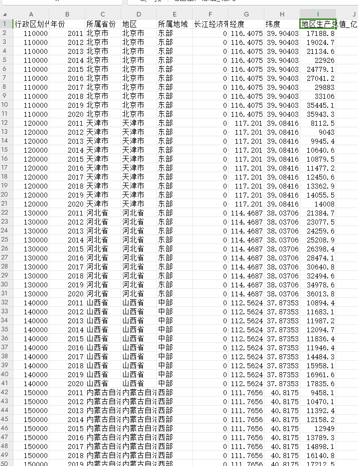 2011-2020各省地区生产总值2011-2020各省地区生产总值