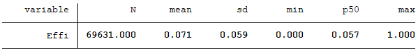 得到上述相关系数ρi,t后,计算每只股票的相关系数年平均值,并取绝对值作为股票定价效率Effi的代理变量,Effi的数值越小表示股票的异质性风险越大,该股票的定价效率就越高。