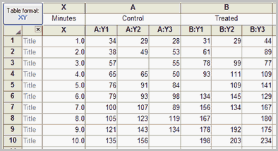 在Welcome或New Table对话框中,选择创建XY数据表。
