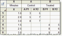 如果您为几个数据集(列A、B和C)输入Y值,Prism将报告X vs. YA、X vs. YB和Xvs. YC的回归结果。它还可以测试斜率(和截距)是否显著不同。